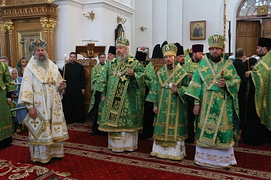Его Высокопреосвященству сослужили: архиепископ Полоцкий и Глубокский Феодосий; архиепископ Новогрудский и Лидский Гурий; епископ Могилевский и Мстиславский Софроний; епископ Гомельский и Жлобинский Стефан; епископ Борисовский и Марьиногорский Вениамин; епископ Туровский и Мозырский Леонид; епископ Молодечненский и Столбцовский Павел; епископ Лидский и Сморгонский Порфирий.