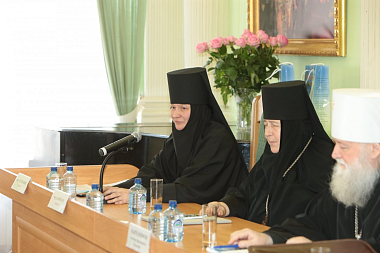 Заместитель Председателя Синодального отдела по монастырям и монашеству, настоятельница Зачатьевского ставропигиального женского монастыря в Москве игумения Иулиания (Каледа) передала присутствующим благословение Председателя Отдела архиепископа Сергиево-Посадского Феогноста и выразила благодарность за возможность принять участие в этом мероприятии. В своем докладе игумения Иулиания осветила проблемы современного монашества.
