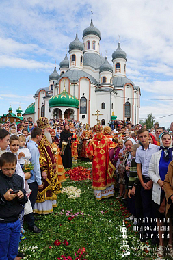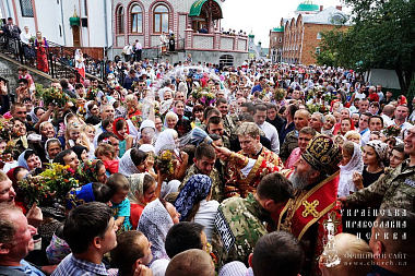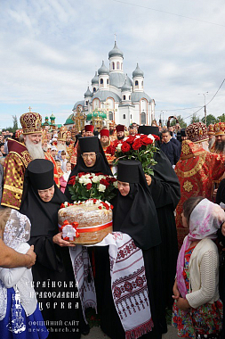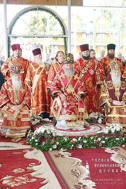 Его Блаженству сослужили: митрополит Хустский и Виноградовский Марк; митрополит Каменец-Подольский и Городокский Феодор; митрополит Могилев-Подольский и Шаргородский Агапит; архиепископ Черновицкий и Буковинский Мелетий; епископ Банченский Лонгин; епископ Конотопский и Глуховский Роман; епископ Ирпенский Климент; епископ Шепетовский и Славутский Евсевий; епископ Ивано-Франковский и Коломыйский Тихон; духовенство монастыря и гости обители в священном сане.