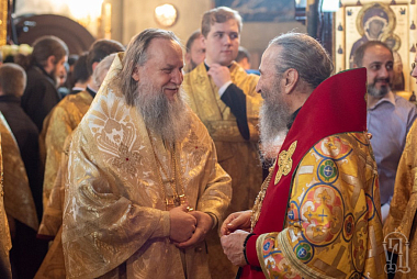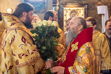 В завершение каждый из участников богослужения имел возможность лично поздравить Блаженнейшего владыку.
