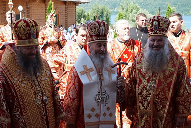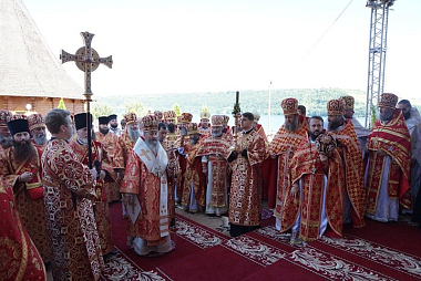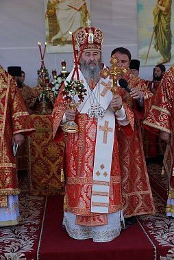 По окончании богослужения митрополит Онуфрий поздравил верующих с праздником и окропил собравшихся освященной водой.