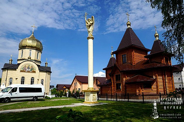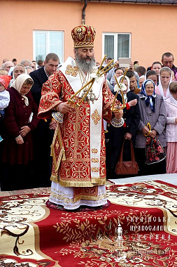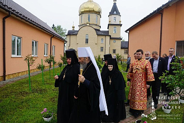 У ворот монастыря Блаженнейшего владыку встречали: митрополит Луганский и Алчевский Митрофан; митрополит Ровенский и Острожский Варфоломей; настоятельница обители игумения Михаила (Заец) с сестрами; воспитанники Воскресной школы, действующей при монастыре.