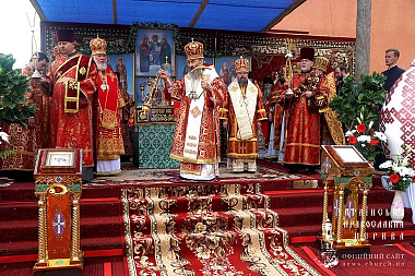 Предстоятель Украинской Православной Церкви в сослужении архиереев и духовенства совершил Божественную литургию на монастырской площади.