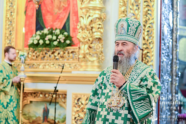 За богослужением Предстоятель УПЦ обратился к многочисленным прихожанам и паломникам Лавры с проповедью.