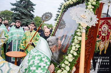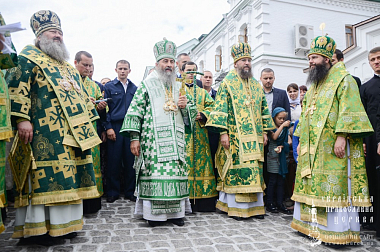 После отпуста духовенство и верующие во главе с Блаженнейшим митрополитом Онуфрием прошли крестным ходом к Дальним пещерам, где на площади состоялся молебен.