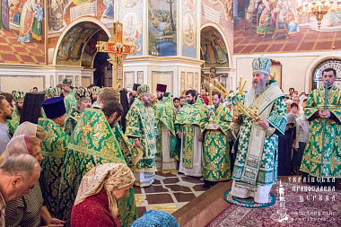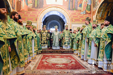 В завершение молебного пения митрополит Павел окропил верующих святой водой, после чего Предстоятель поздравил собравшихся с праздником и благословил всех.