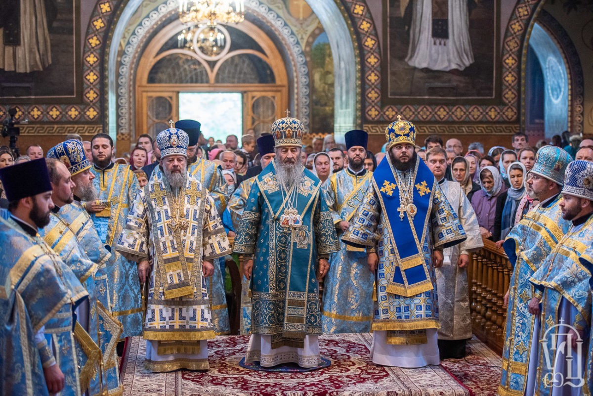 Предстоятелю Украинской Православной Церкви сослужили председатель Отдела внешних церковных связей УПЦ митрополит Луганский и Алчевский Митрофан, епископ Бородянский Марк, духовенство и гости обители в священном сане. За богослужением молились настоятельница монастыря игумения Калисфения (Шамайло) с сестрами, прихожане и паломники обители.