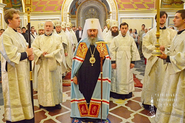 5 июля 2016 года, во вторую годовщину со дня упокоения Блаженнейшего митрополита Киевского и всея Украины Владимира (Сабодана, +2014), Предстоятель Украинской Православной Церкви Блаженнейший митрополит Киевский и всея Украины Онуфрий совершил заупокойную Божественную литургию в Свято-Успенском соборе Киево-Печерской лавры.