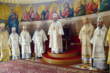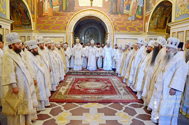 Предстоятелю Украинской Православной Церкви сослужил сонм архиереев: митрополиты Одесский и Измаильский Агафангел; Вышгородский и Чернобыльский Павел, наместник Успенской Киево-Печерской лавры; Белоцерковский и Богуславский Августин, Черниговский и Новгород-Северский Амвросий, Переяслав-Хмельницкий и Вишневский Александр; архиепископы – Белогородский Николай, Бучанский Пантелеимон, Запорожский и Мелитопольский Лука, Нежинский и Прилукский Ириней, Макаровский Иларий, Уманский и Звенигородский Пантелеимон, Яготинский Серафим, Ровеньковский и Свердловский Пантелеимон; епископы – Новомосковский Евлогий, Боярский Феодосий, Дионисий (Константинов), Конотопский и Глуховский Роман, Бородянский Варсонофий, Вознесенский и Первомайский Алексий, Шепетовский и Славутский Евсевий, а также братия и гости монастыря в священном сане.