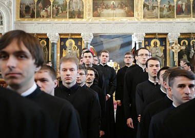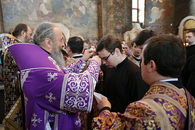 Перед Литургией состоялось традиционное ежегодное посвящение в чтецы воспитанников выпускного курса Киевской Духовной семинарии.