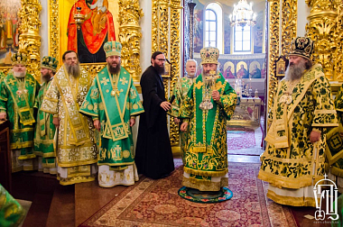 Его Блаженству сослужили: наместник обители митрополит Вышгородский и Чернобыльский Павел; ректор Киевской Духовной академии и семинарии, управляющий делами Украинской Православной Церкви митрополит Бориспольский и Броварской Антоний; митрополит Запорожский и Мелитопольский Лука; митрополит Черниговский и Новгород-Северский Амвросий; ректор Московской Духовной академии, председатель Учебного комитета Русской Православной Церкви архиепископ Верейский Евгений; архиепископ Бучанский Пантелеимон; архиепископ Кировоградский и Новомиргородский Иоасаф; архиепископ Ровеньковский и Свердловский Пантелеимон; председатель Учебного комитета Украинской Православной Церкви епископ Ирпенский Климент; епископ Бородянский Варсонофий; епископ Фастовский Дамиан; епископ Вознесенский и Первомайский Алексий; епископ Васильковский Николай; епископ Новосанжарский Вениамин; преподаватели, воспитанники и гости Киевский Духовных школ в священном сане.