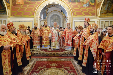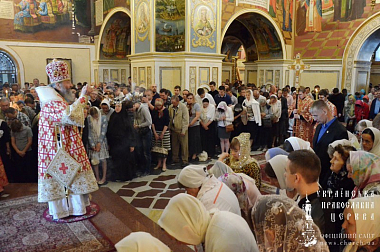 Накануне вечером Блаженнейший владыка совершил Всенощное бдение в том же храме.