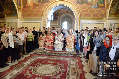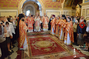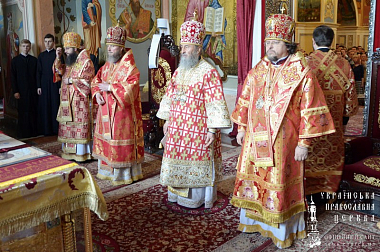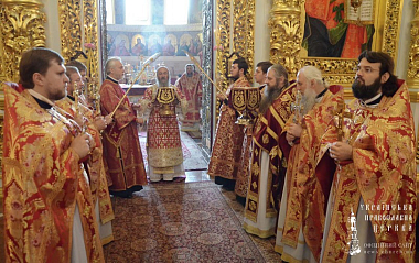 За Литургией Его Блаженству сослужили: архиепископ Бучанский Пантелеимон; епископ Макаровский Иларий; епископ Ирпенский Климент, а также духовенство монастыря.