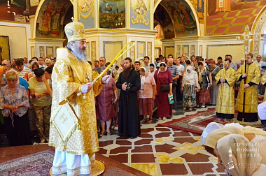 После чтения Святого Евангелия Предстоятель обратился к пастве с архипастырским словом, в котором рассказал о значении Евангельских заповедей блаженств в восхождении христианина по лестнице спасения.