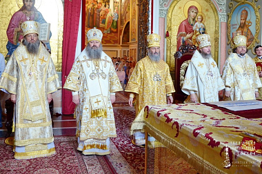 В сам день праздника Его Блаженству сослужили наместник обители митрополит Вышгородский и Чернобыльский Павел, архиепископ Бучанский Пантелеимон, архиепископ Запорожский и Мелитопольский Лука, архиепископ Макаровский Иларий, а также духовенство монастыря.