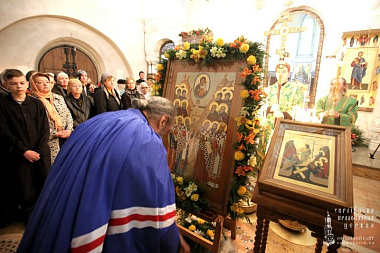 По завершении богослужения Блаженнейший владыка возглавил молебное пение перед иконой Собора преподобных и преподобномучеников Зверинецких. После молитвы святым митрополит Онуфрий поздравил архиереев, наместника обители, духовенство и мирян с 5-й Неделей Великого поста и днем памяти преподобных Зверинецких.