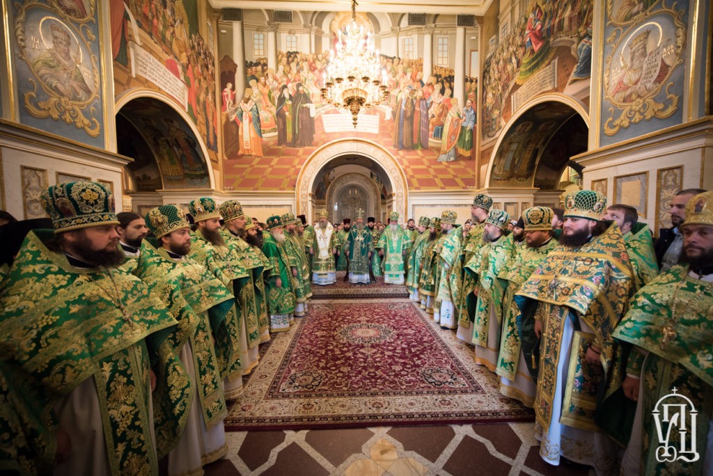Его Блаженству сослужили наместник обители митрополит Вышгородский и Чернобыльский Павел, митрополит Николаевский и Очаковский Питирим, архиепископы Бучанский Пантелеимон, архиепископ Макаровский Иларий, архиепископ Ровеньковский и Свердловский Пантелеимон, архиепископ Ирпенский Климент, епископ Фастовский Дамиан, а также духовенство монастыря и гости в священном сане.