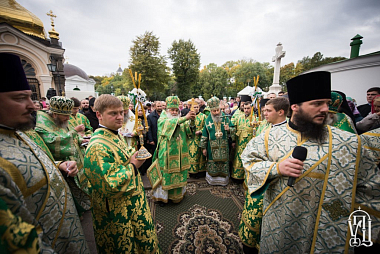 По окончании Божественной литургии Предстоятель Украинской Православной Церкви возглавил крестный ход к Ближним пещерам, где был совершен молебен преподобным Киево-Печерским.