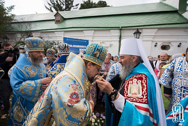 Его Блаженству сослужили наместник обители митрополит Вышгородский и Чернобыльский Павел, управляющий делами УПЦ митрополит Бориспольский и Броварской Антоний, митрополит Нежинский и Прилуцкий Ириней, архиепископ Гурий (Кузьменко), архиепископ Бучанский Пантелеимон, архиепископ Макаровский Иларий, архиепископ Ирпенский Климент, епископ Васильковский Николай, епископ Барышевский Виктор, а также духовенство монастыря и гости в священном сане.