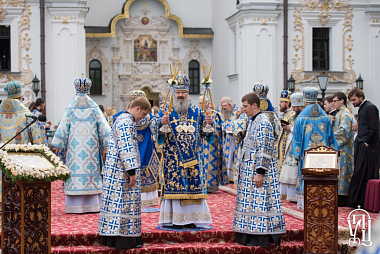 По окончании Божественной литургии Предстоятель Украинской Православной Церкви возглавил крестный ход к Ближним пещерам Киево-Печерской лавры, где состоялся праздничный молебен.