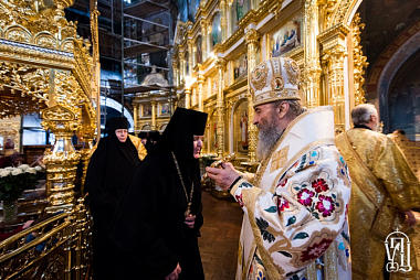 Накануне Блаженнейший митрополит Онуфрий возглавил всенощное бдение в Трапезном храме преподобных Антония и Феодосия Успенской Киево-Печерской лавры.