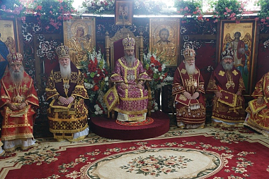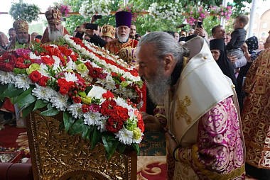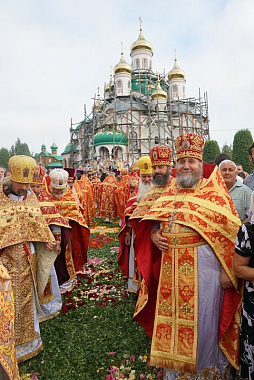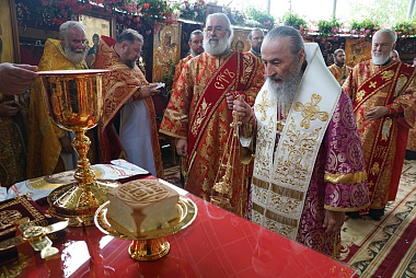 За Литургией Его Блаженству сослужили митрополит Хустский и Виноградовский Марк, митрополит Каменец-Подольский и Городокский Феодор, митрополит Вышгородский и Чернобыльский Павел, митрополит Тернопольский и Кременецкий Сергий, митрополит Могилев-Подольский и Шаргородский Агапит, митрополит Черновицкий и Буковинский Мелетий, архиепископ Ивано-Франковский и Коломыйский Серафим, архиепископ Банченский Лонгин, архиепископ Нежинский и Прилукский Климент, архиепископ Винницкий и Барский Варсонофий, епископ Шепетовский и Славутский Евсевий, епископ Хотинский Вениамин, гости праздника в священном сане и духовенство обители.