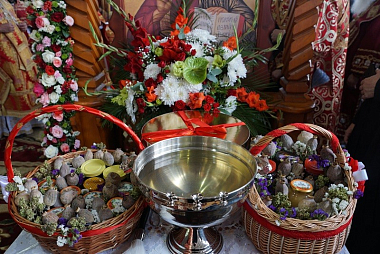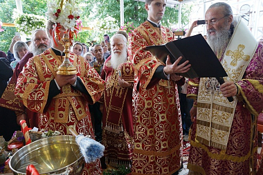 Я всех поздравляю со святым Успенским постом. Желаю сестрам святой обители и игумении Августе, всем священникам, которые здесь служат, всем паломникам, которые сюда пришли, Божиего благословения. Чтобы молитвами святых мучеников Маккавеев и силой Честного Животворящего Креста Господь нас хранил в добром здравии и благочестии. С праздником всех!»