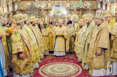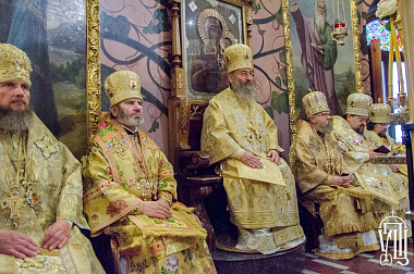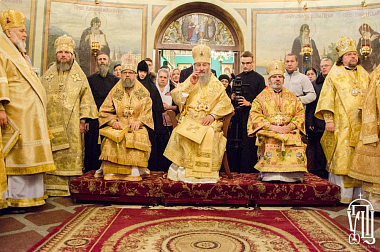 Его Блаженству сослужили митрополит Белоцерковской и Богуславский Августин, архиепископ Белогородский Николай, архиепископ Гурий (Кузьменко), архиепископ Бучанский Пантелеимон, архиепископ Макаровский Иларий, архиепископ Городницкий Александр, епископ Боярский Феодосий, епископ Дионисий (Константинов), епископ Бородянский Варсонофий, наместник обители епископ Фастовский Дамиан, епископ Васильковский Николай, епископ Золотоношский Иоанн, а также духовенство монастыря, Киевской и других епархий УПЦ.
