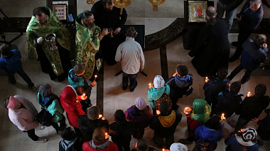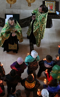 В Аннозачатьевском храме монастыря был отслужен молебен; детей помазали святым елеем, окропили святой водой. Во время молебна иеромонаху Лукиану сослужил насельник Лавры иеромонах Иннокентий, несущий послушание в отделе информации и связей с общественностью. Отец Иннокентий общался с волонтерами, преподавателями и родителями, сопровождавшими детей.