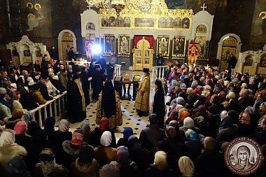 Затем в Трапезном храме Предстоятель Украинской Православной Церкви Блаженнейший митрополит Киевский и всея Украины Онуфрий возглавил всенощное бдение. Его Блаженству сослужили управляющий делами Украинской Православной Церкви митрополит Бориспольский и Броварской Антоний, архиепископ Северодонецкий и Старобельский Никодим, архиепископ Ирпенский Климент, а также Собор духовенства Киево-Печерской лавры. За богослужением молились игумен Феоктист (Гурэу) и отец Герман (Мудренко), доставившие святыни прп. Паисия из Ново-Нямецкого ставропигиального мужского монастыря, а также делегация Драгомирнского монастыря Сошествия Святого Духа из Румынии во главе с секретарем обители монахиней Марией Магдалиной (Гергиной).