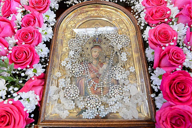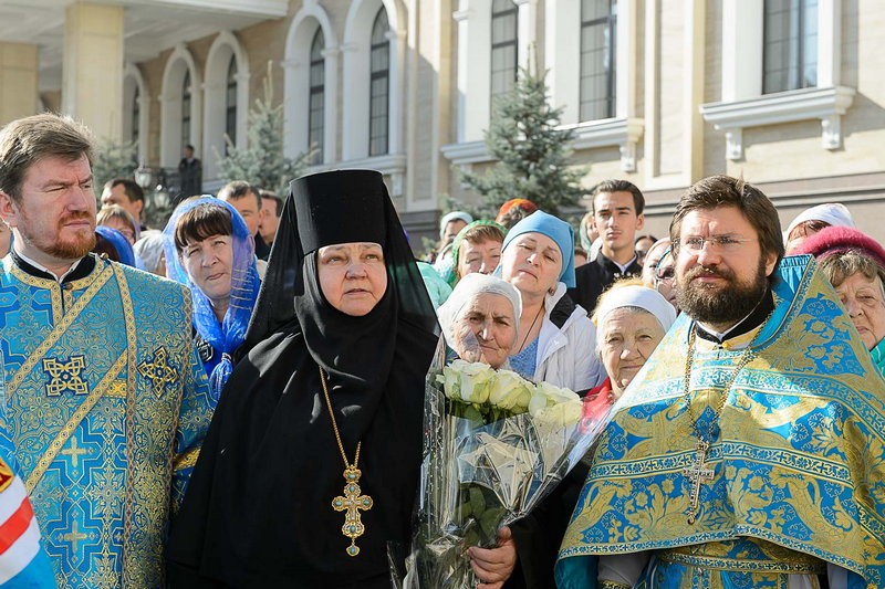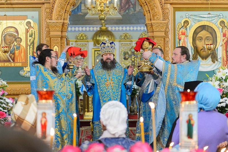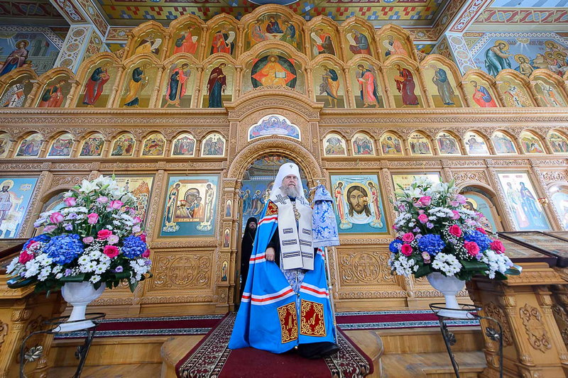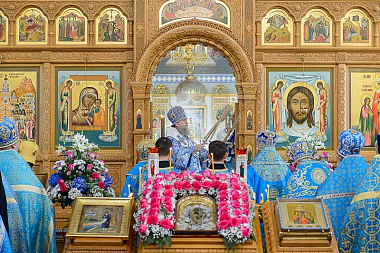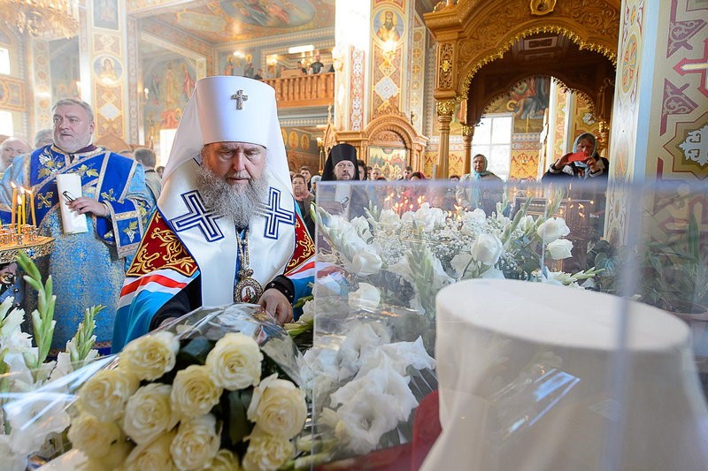 Литургия завершилась славлением Пресвятой Богородице перед Ее Иверским образом и литией у гробницы митрополита Иосифа (Чернова), после чего митрополит Александр поздравил Преосвященных епископов, матушку игумению, духовенство и прихожан с престольным праздником и произнес проповедь перед молящмися.