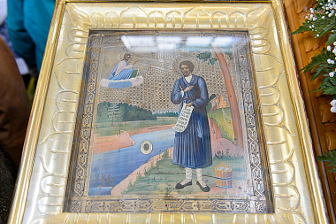 На аналое в центре храма находились два моленных образа, принадлежавшие приснопамятному старцу-святителю митрополиту Иосифу (Чернову): Иверская икона Божией Матери и икона святого праведного Симеона Верхотурского с частицей его честных мощей. Иверский образ Царицы Небесной в 1912 году был привезен с Афона и подарен будущему казахстанскому иерарху в бытность его послушником в Тверском Успенском Отрочем монастыре. С образом «Благой Вратарницы», написанным на Святой Горе, владыка Иосиф не разлучался в течение всей своей жизни, ему удавалось сохранять ее при себе даже в бараках концлагерей и тюремных камерах. Праведного Симеона Верхотурского митрополит Иосиф (Чернов) почитал особо. Святитель в сложных ситуациях всегда молитвенно обращался к нему за помощью и называл его «инспектором Алма-Атинского епархиального управления».