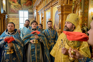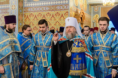Его Высокопреосвященству сослужили: епископ Талдыкорганский Нектарий, епископ Усть-Каменогорский и Семипалатинский Амфилохий, епископ Кокшетауский и Акмолинский Серапион, епископ Петропавловский и Булаевский Владимир; благочинный храмов Алма-Аты, настоятель Свято-Никольского собора протоиерей Валерий Захаров, благочинный Астанайского церковного округа архимандрит Сергий (Карамышев), руководители отделов и комиссий Митрополичьего округа в священном сане, настоятели и духовенство храмов южной столицы Казахстана.