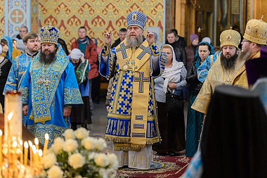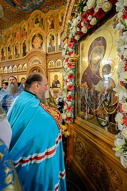 Богослужение завершилось славлением Пресвятой Богородице перед Ее Иверским образом и литией у гробницы митрополита Иосифа (Чернова), после чего митрополит Александр поздравил архиереев, матушку игумению, духовенство, монашествующих и прихожан с праздником в честь чудотворной иконы Божией Матери, именуемой «Благой Вратарницей», и обратился к верующим со словами проповеди.