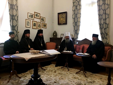 По завершении литургии владыка Кирилл и члены прибывшей с ним делегации посетили Священный Кинот – центральный исполнительный соборный орган управления Святой Горы.