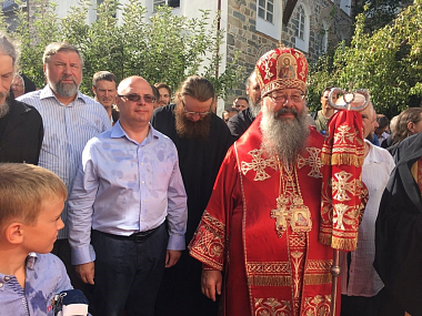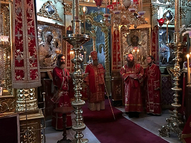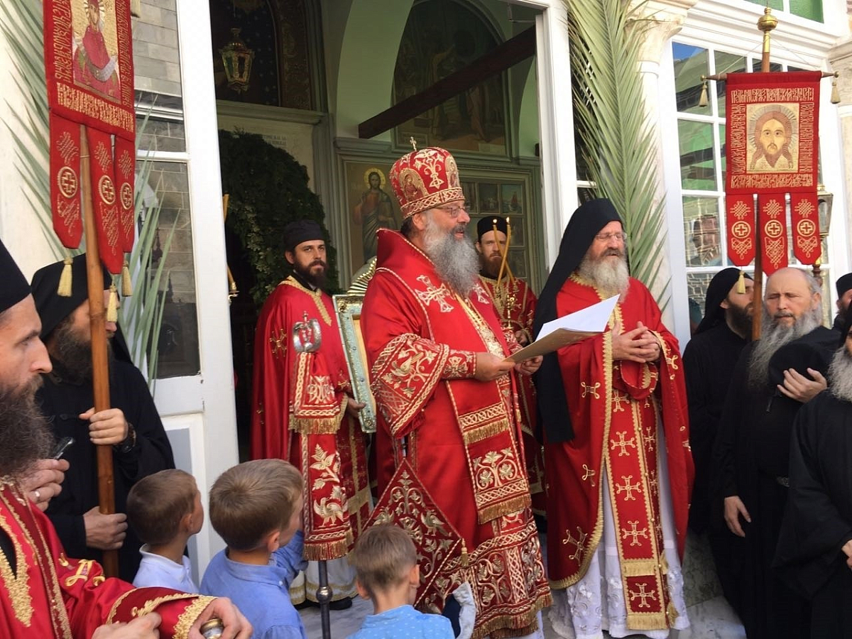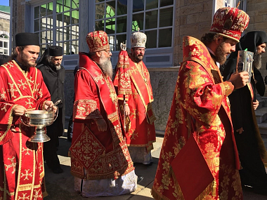 9 августа праздничную Божественную литургию на греческом и церковнославянском языках возглавил митрополит Екатеринбургский и Верхотурский Кирилл, которому сослужили епископ Бобруйский и Быховский Серафим, епископ Барышевский Виктор, игумен монастыря Ксенофонт архимандрит Алексий, игумен Пантелеимоновского монастыря архимандрит Евлогий (Иванов), братия обители и ее гости в священном сане.