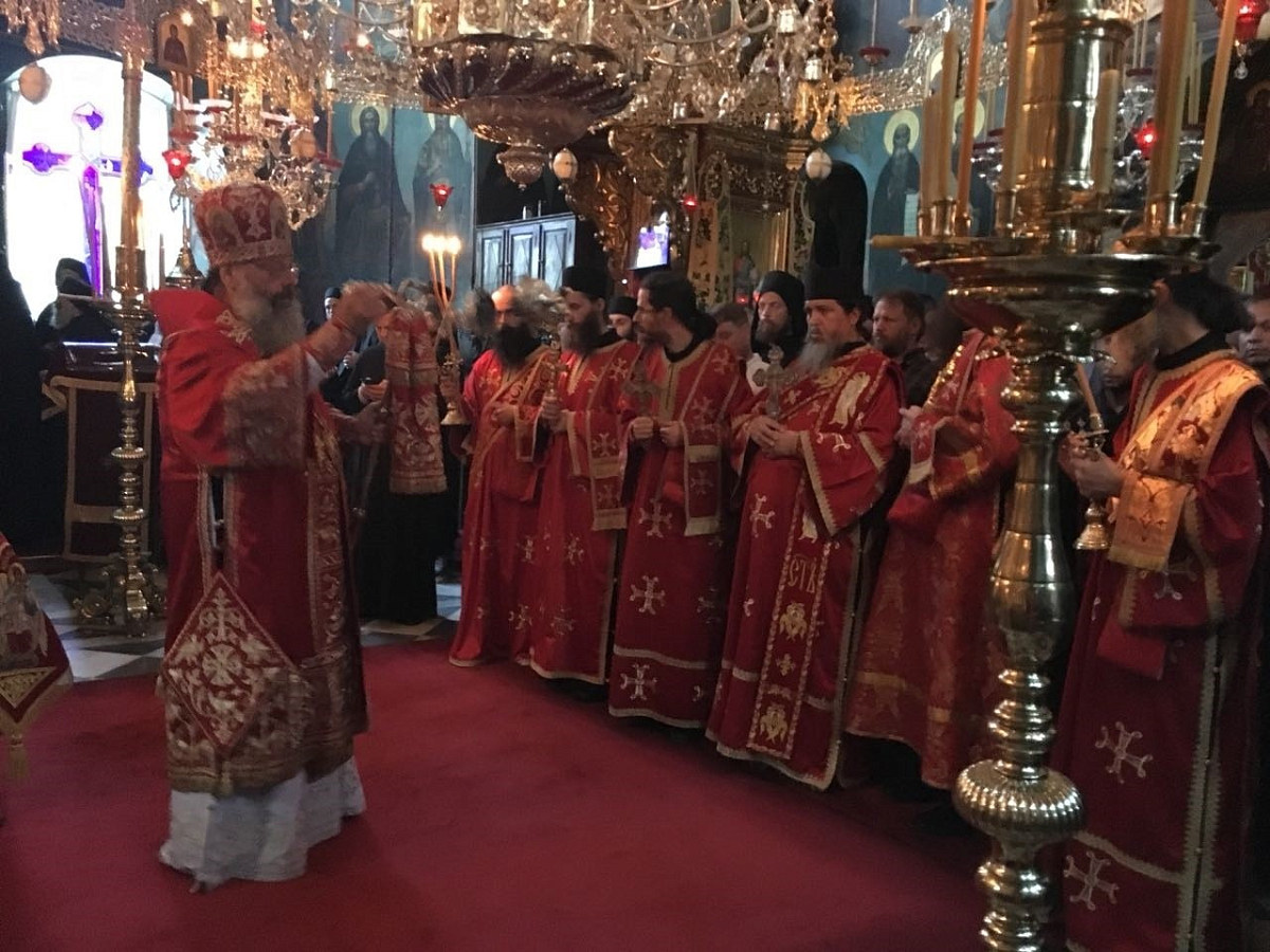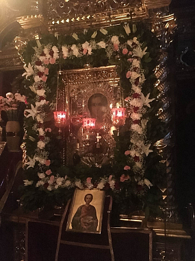 Вечером того же дня в главном храме Пантелеимонова монастыря было совершено праздничное всенощное бдение.