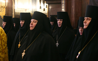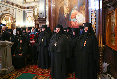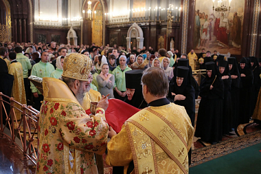 В этот день Предстоятеля Русской Православной Церкви от лица монашествующих поздравили руководители Синодального отдела по монастырям и монашествующим: Председатель Синодального отдела по монастырям и монашествующим, наместник Троице-Сергиевой лавры архиепископ Сергиево-Посадский Феогност; Председатель Комиссии Межсоборного присутствия по вопросам организации жизни монастырей и монашества митрополит Нижегородский и Арзамасский Георгий; Заместитель Председателя Синодального отдела по монастырям и монашеству, настоятельница Зачатьевского ставропигиального женского монастыря Москвы игумения Иулиания (Каледа).