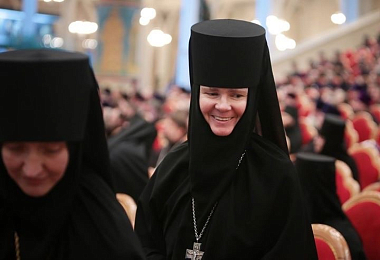 В своем докладе Предстоятель Русской Православной Церкви отметил, что в Патриаршую епархию входят 33 обители: 15 мужских с 1 029 насельниками и 18 женских с 970 насельницами.