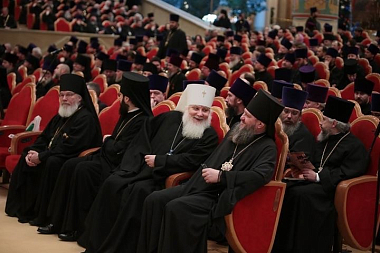 В президиуме собрания присутствуют: Патриарший наместник Московской епархии митрополит Крутицкий и Коломенский Ювеналий; управляющий делами Московской Патриархии митрополит Санкт-Петербургский и Ладожский Варсонофий; председатель Отдела внешних церковных связей Московского Патриархата митрополит Волоколамский Иларион; первый викарий Святейшего Патриарха по г. Москве митрополит Истринский Арсений; секретарь Святейшего Патриарха по г. Москве протопресвитер Владимир Диваков.