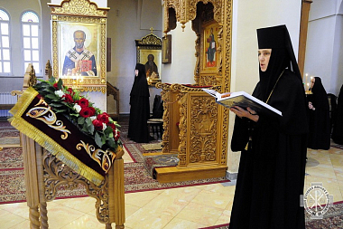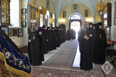Затем процессия сестер и духовенства с пением тропаря, кондака и величания празднику проследовала в Казанский храм обители, где перед иконой Воздвижения Креста Господня была прочитана молитву празднику.