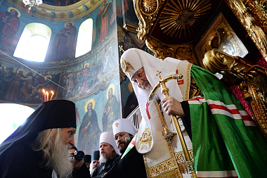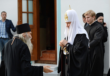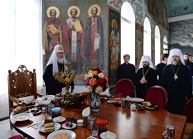 После богослужения Предстоятель Русской Православной Церкви разделил трапезу с братией обители.