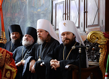 27 мая 2016 года Святейший Патриарх Московский и всея Руси Кирилл молился за малой вечерней в соборе Пантелеимонова монастыря на Святой Горе Афон.