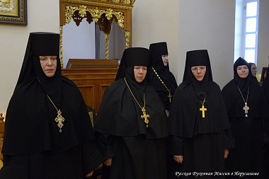 За сугубой ектенией были возглашены особые прошения о мире и благопоспешении матушке игумении, а после возгласа, завершающего ектению, прочитана благодарственная молитва Господу и Спасителю нашему Иисусу Христу, сподобившему Свою верную послушницу игумению Георгию достичь на посту настоятельницы Горненской обители столь почтенного возраста в здравии и благополучии.