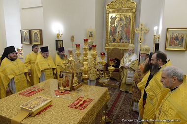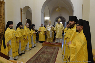 Божественную литургию в соборе Всех святых, в земле Русской просиявших, в этот высокоторжественный и памятный для прихожан обители и почитательниц матушки день совершили митрополит Капитолиадский Исихий (Иерусалимский Патриархат) и митрополит Тамбовский и Рассказовский Феодосий, прибывший на торжества во главе делегации Русской Православной Церкви как официальный представитель Патриарха Московского и всея Руси Кирилла.