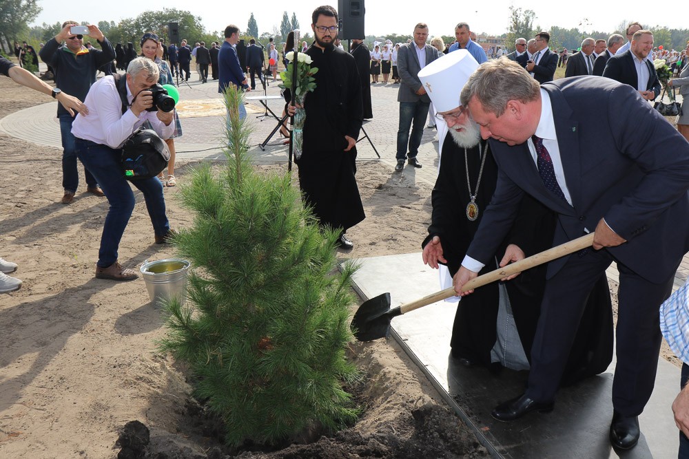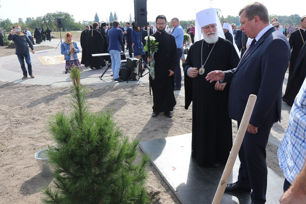 Затем митрополит Павел и все участники торжеств проследовали к строящемуся храму Рождества Христова, на прилегающей территории которого состоялась закладка аллеи и посадка деревьев – сибирских кедров. Это действо было посвящено 370-летию со дня мученической кончины святого Афанасия Брестского и состоялось в ознаменование предстоящего юбилея – 1000-летия со времени основания города Бреста.