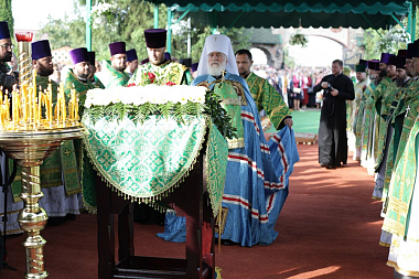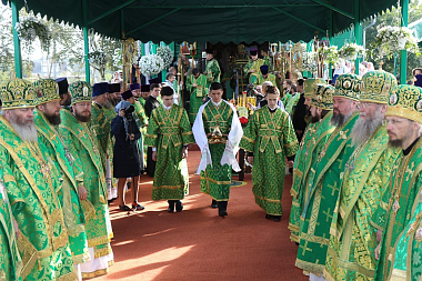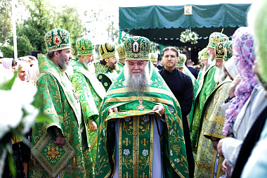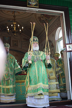 По окончании богослужения с приветствием к Патриаршему экзарху обратился архиепископ Брестский и Кобринский Иоанн, а затем прозвучало слово заместителя председателя Брестского облисполкома Олега Величко. Патриарший экзарх поблагодарил архиепископа Иоанна и Олега Ивановича за слова приветствия, поздравил архипастырей, духовенство, благочестивых паломников с праздником и обратился ко всем со словом назидания. Владыка экзарх поздравил всех причастников с принятием Святых Христовых Таин и преподал верующим архипастырское благословение.