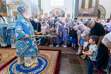 По завершении акафиста Патриарший экзарх поздравил присутствовавших с праздником и обратился ко всем со словом назидания.