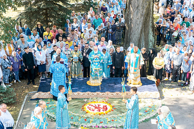 По окончании Литургии от Успенского собора был совершен крестный ход с плащаницей Божией Матери к храму Рождества Пресвятой Богородицы, именуемому Явленским, воздвигнутому на месте второго чудесного обретения Жировичской иконы Пресвятой Богородицы. Перед Явленским храмом был отслужен молебен с чтением акафиста Успению Пресвятой Богородицы.