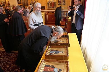 23 сентября в Святогорскую лавру была принесена икона Божией Матери «Скоропослушница» – дар обители от митрополита Одесского и Измаильского Агафангела. Образ был написан в Иверском Одесском мужском монастыре и освящен в монастыре Дохиар на Святой Горе Афон. Икону, доставленную митрополитом Агафангелом, встречали священноархимандрит Святогорской лавры митрополит Донецкий и Мариупольский Иларион и наместник Святогорской обители митрополит Святогорский Арсений.